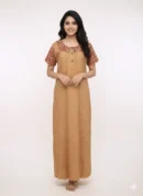 Elevate your nighttime comfort with our 3 Button Round Patch Neck Nighty, designed for both style and relaxation. Crafted from premium cotton fabric, this nighty offers a breathable and soft feel, ensuring a restful sleep. The round patch neck design with three functional buttons adds a touch of sophistication while allowing easy wearability.