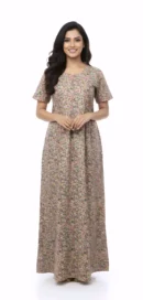 Discover comfort and style with our 60-Length Frock Nighty, crafted from 100% premium cotton fabric and featuring a unique frock design for a chic and elegant bedtime look.