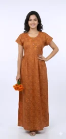 Discover comfort and style with our 60-Length Frock Nighty, crafted from 100% premium cotton fabric and featuring a unique frock design for a chic and elegant bedtime look.