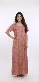 Elevate your bedtime routine with our Frock Nighty, a perfect blend of charm and comfort. Crafted from soft and breathable cotton fabric, this nighty features a graceful frock-style design that exudes effortless elegance. The round neckline and short sleeves ensure a relaxed fit, while the flowing silhouette drapes beautifully for ultimate comfort. Ideal for lounging or sleeping, our Frock Nighty promises a cozy and stylish addition to your sleepwear collection, making every night a luxurious affair.