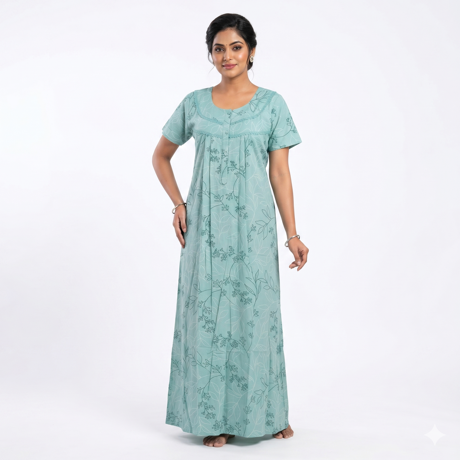 Crafted from premium breathable cotton, this nighty keeps you cool and relaxed all day and night. The elegant prints and neat finishing give you a classy look even at home.