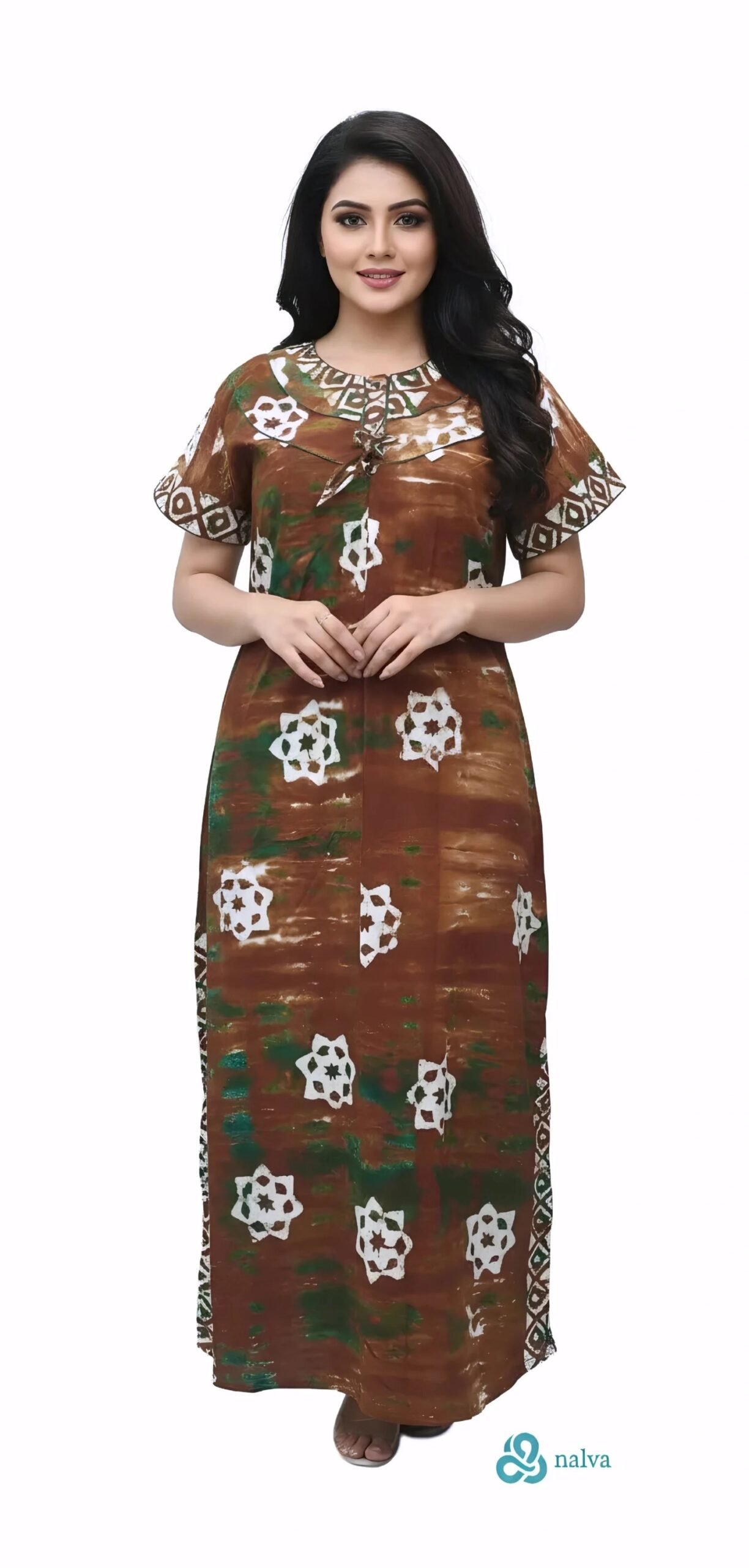 Indulge in cozy elegance with our Batiq  Double Patch Nighty, a perfect combination of comfort and style. Crafted from premium cotton fabric, this nighty features a unique double patch design that adds a touch of sophistication. The round neckline and short sleeves ensure a relaxed fit, while the soft material drapes gently for a luxurious feel. Ideal for lounging or sleeping, the  Batiq Double Patch Nighty promises to be your favorite go-to for peaceful nights and lazy mornings alike. Embrace comfort and refinement with every wear.
