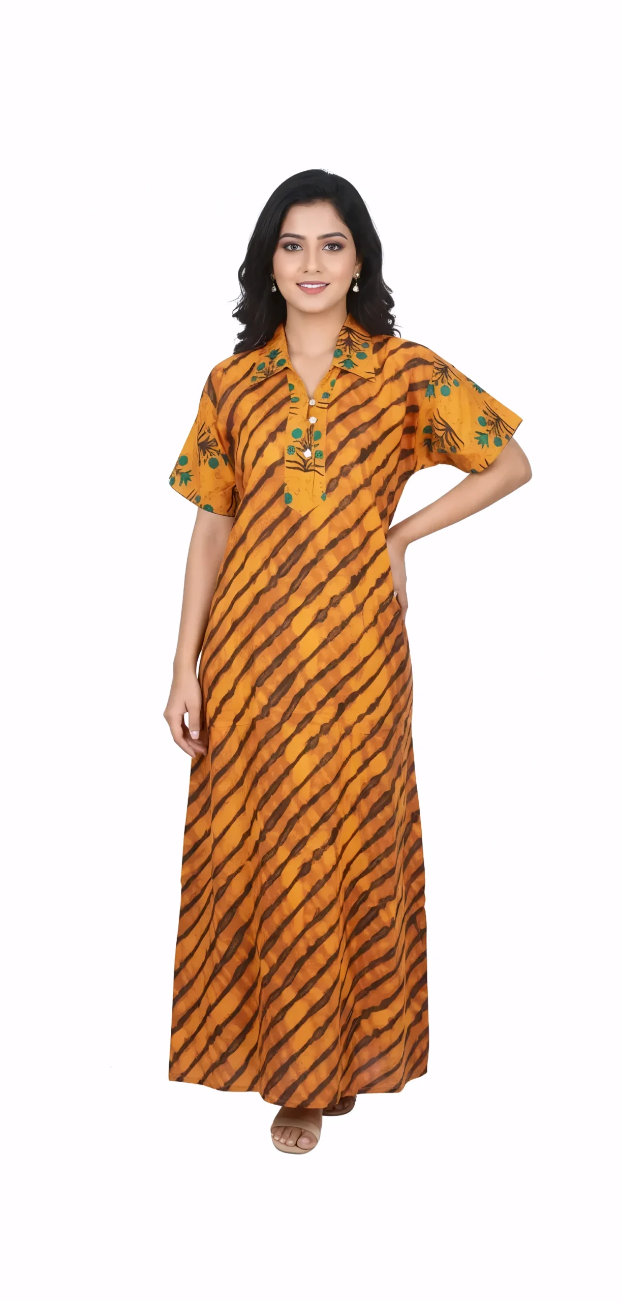 Discover comfort and style with our Collar Nighty, crafted from soft cotton with a chic collar neckline for a sophisticated bedtime look.