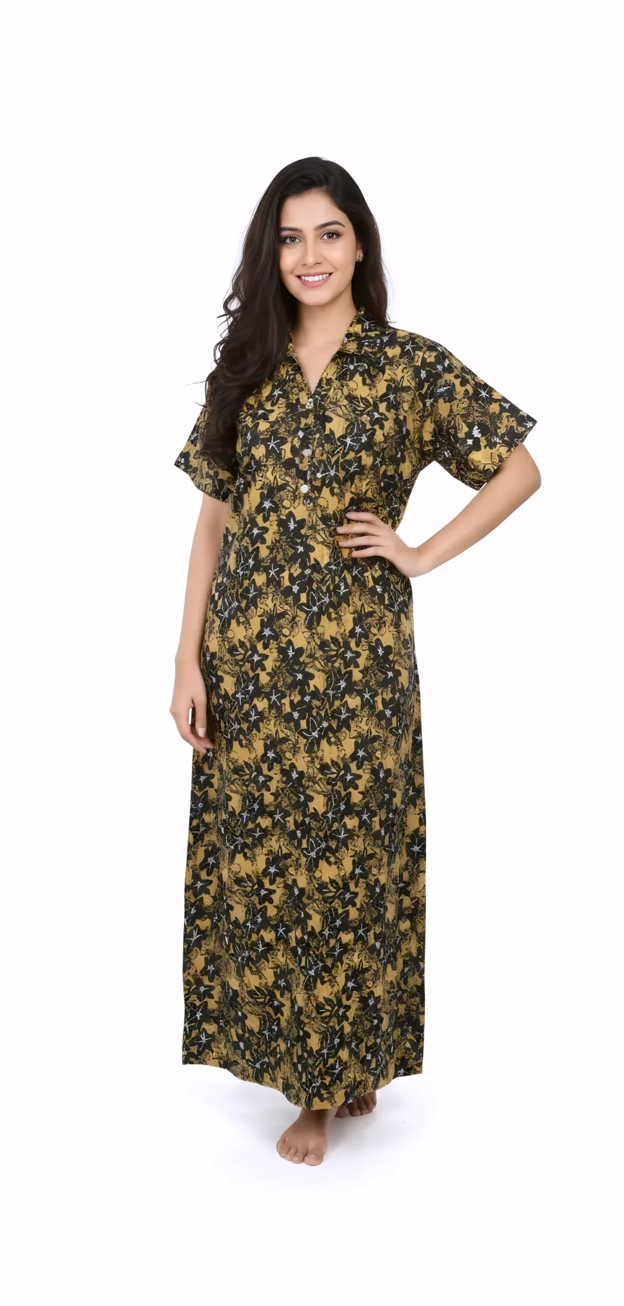 Discover comfort and style with our Collar Nighty, crafted from soft cotton with a chic collar neckline for a sophisticated bedtime look.