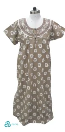 Elevate your nighttime elegance with our Embroidered Neck Nighty, designed to combine style and comfort effortlessly. Made from premium, breathable fabric, this nighty features exquisite embroidery work adorning the neckline, adding a touch of sophistication to your sleepwear. The round neck and short sleeves provide a relaxed fit, while the flowing silhouette flatters every body type.
