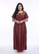 This embroidered nighty is an excellent choice for those seeking both beauty and coziness in their sleepwear collection.