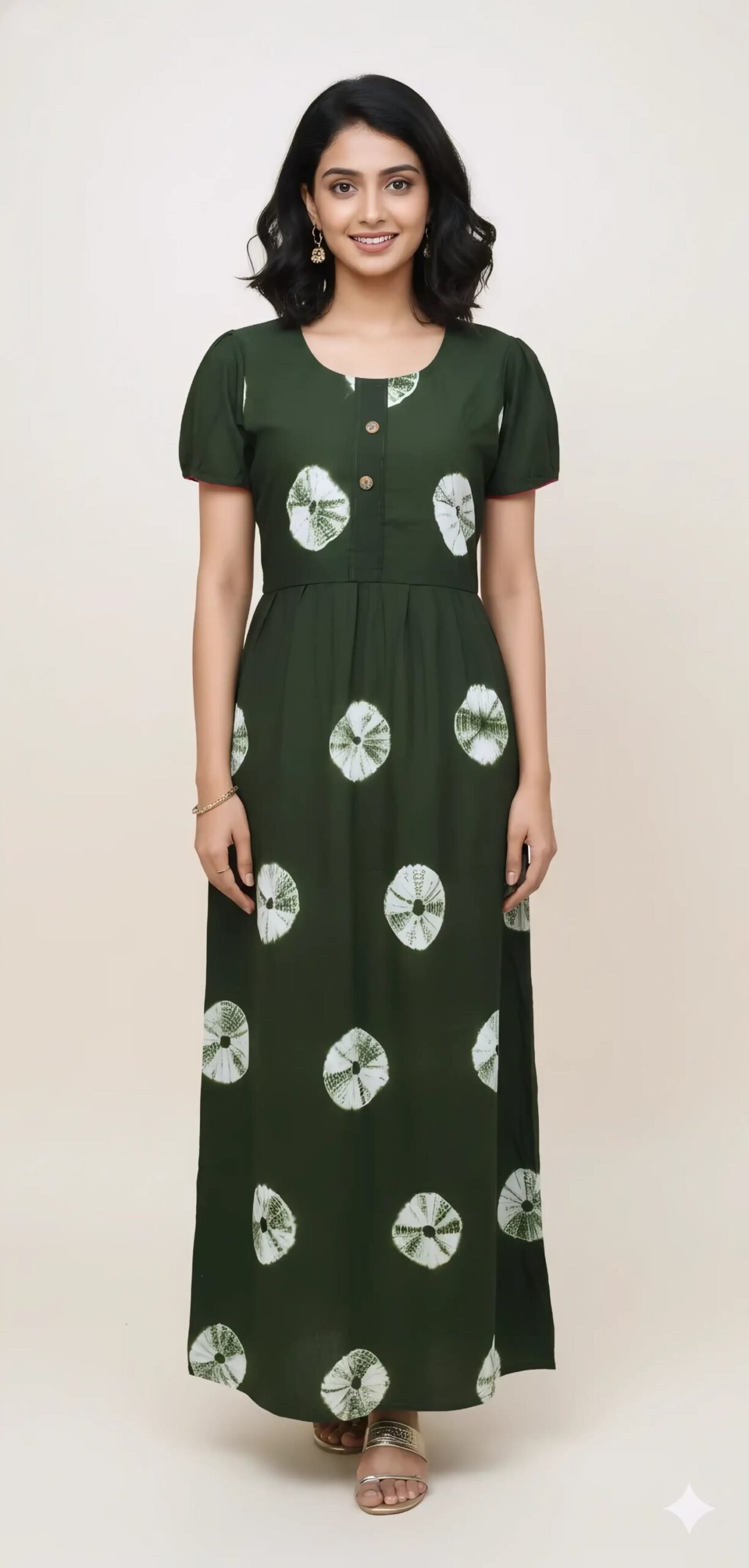 Discover elegance and comfort with our Batiq Frock Nighty, made from soft cotton with a graceful frock-style design for a chic bedtime look.