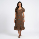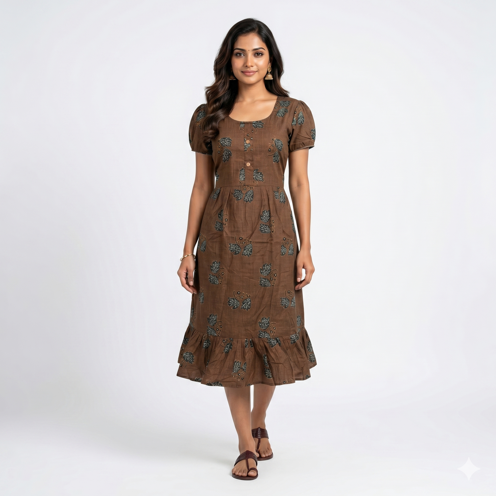 Fabric & Fit: Made from soft, breathable cotton, it boasts a frock-style silhouette with a round neckline and short sleeves, offering a relaxed yet stylish look.