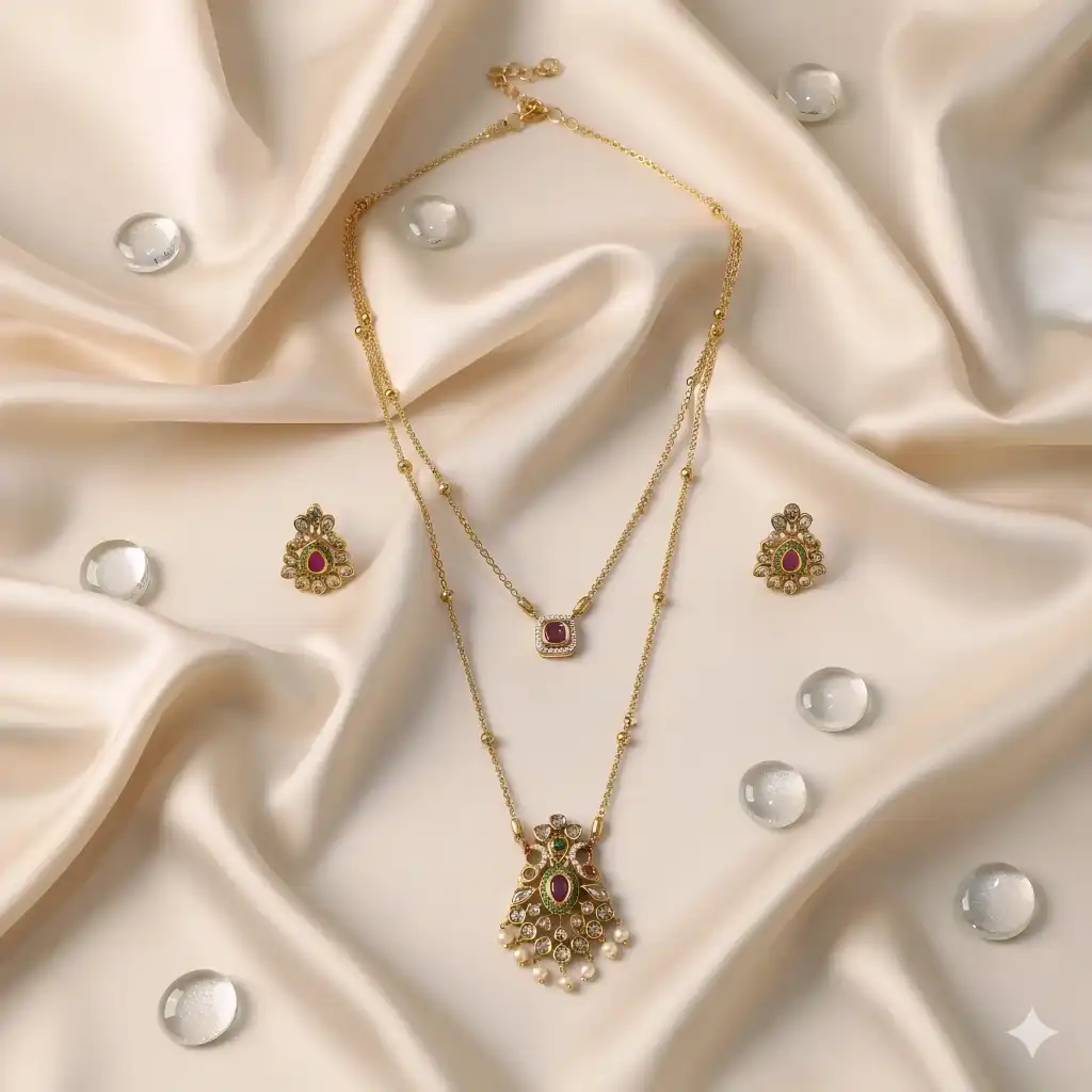 Enhance your style with this exquisite imitation necklace, crafted with precision and elegance to give you a luxurious look without the heavy price tag. Designed with high-quality materials and intricate detailing, it beautifully complements both traditional and modern outfits. Perfect for weddings, parties, and festive celebrations, this stunning piece adds a graceful sparkle to your neckline, making you stand out on every occasion. 💎