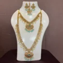 A stunning 1 gram gold necklace specially crafted for party wear and festive occasions. Designed with a brilliant gold finish, it gives you the rich and luxurious appearance of real gold while remaining lightweight and easy to wear throughout the event. The elegant detailing and polished shine beautifully enhance your neckline, making it a perfect accessory to elevate both traditional and contemporary outfits.
