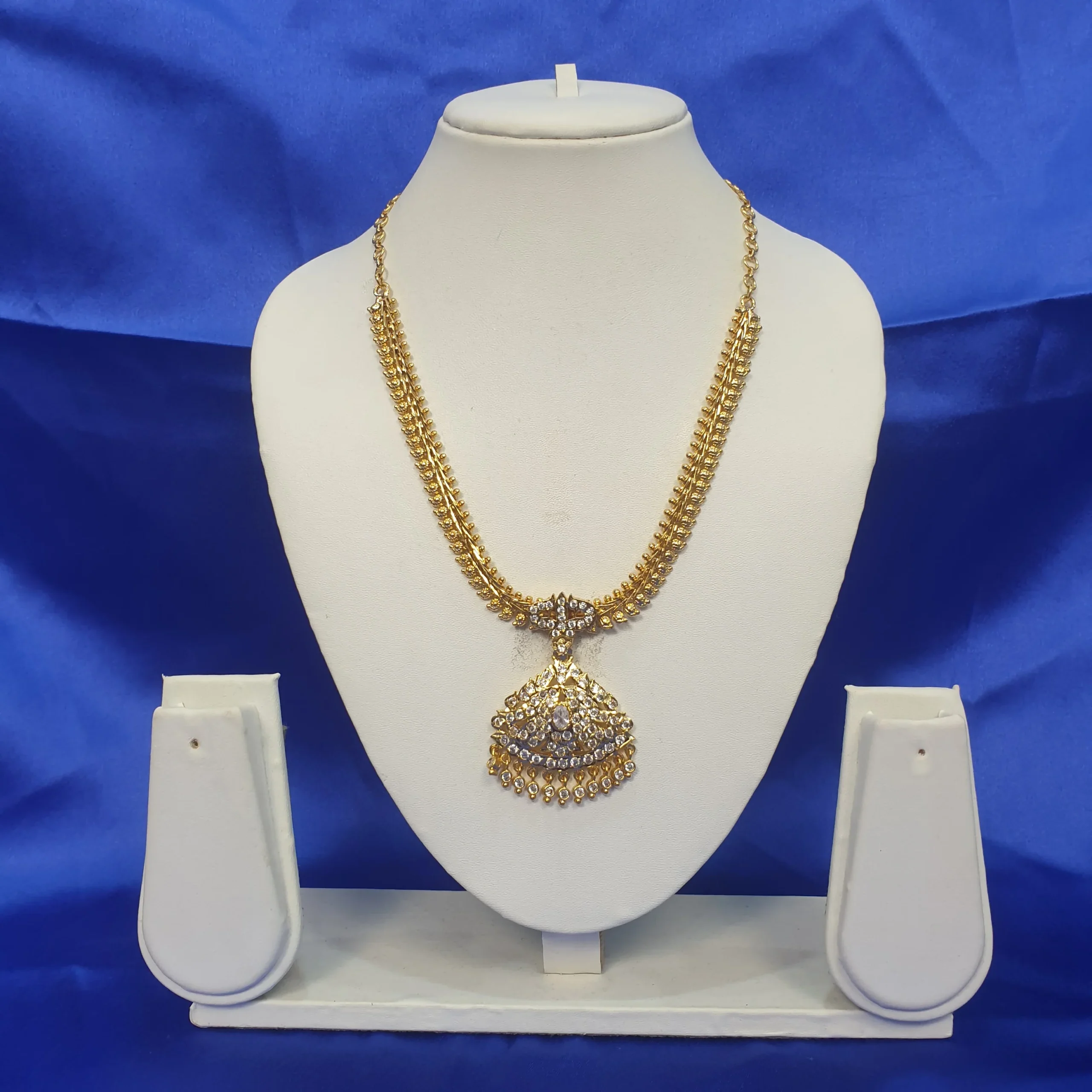 Enhance your style with this exquisite Panchaloham necklace, crafted with precision and elegance to give you a luxurious look without the heavy price tag. Designed with high-quality materials and intricate detailing, it beautifully complements both traditional and modern outfits. Perfect for weddings, parties, and festive celebrations, this stunning piece adds a graceful sparkle to your neckline, making you stand out on every occasion. 💎