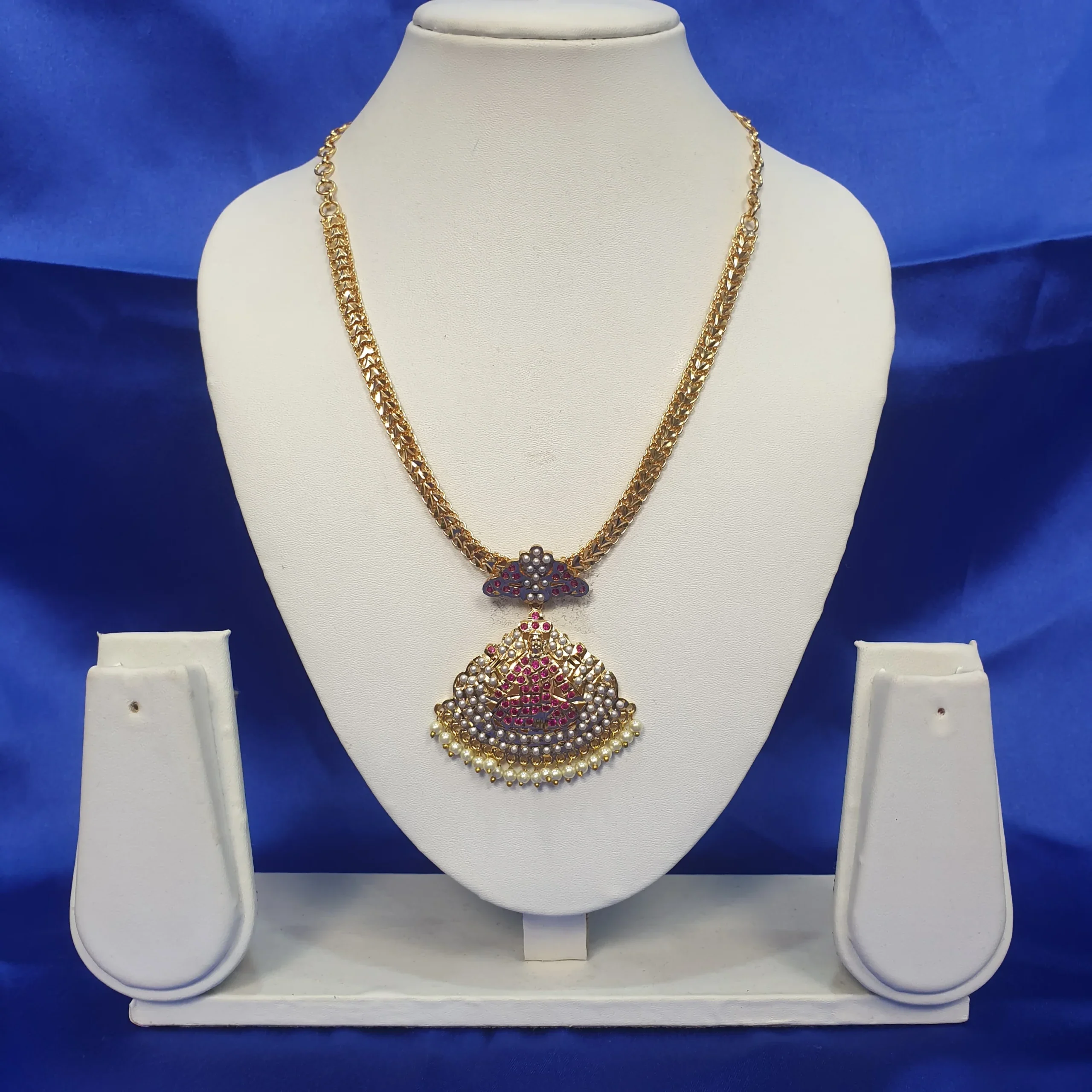 Enhance your style with this exquisite Panchaloham necklace, crafted with precision and elegance to give you a luxurious look without the heavy price tag. Designed with high-quality materials and intricate detailing, it beautifully complements both traditional and modern outfits. Perfect for weddings, parties, and festive celebrations, this stunning piece adds a graceful sparkle to your neckline, making you stand out on every occasion. 💎